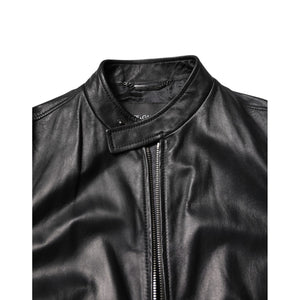 Dolce & Gabbana Black Sheep Leather Biker Full Zip Jacket