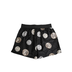 Dolce & Gabbana Black Silk Ancient Coin Print Boxer Short Swimwear