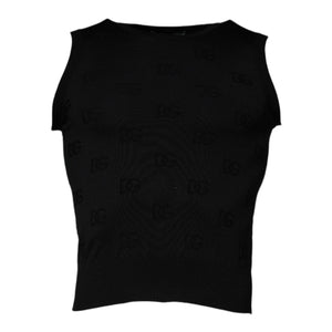 Dolce & Gabbana Black Silk Round Neck Sleeveless T-shirt
