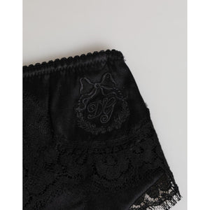 Dolce & Gabbana Black Silk Satin Floral Lace Panty Brief Underwear