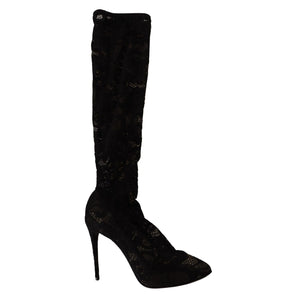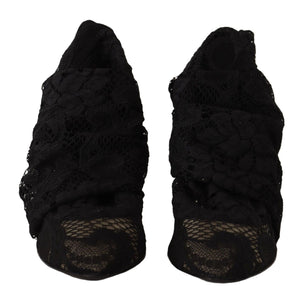 Dolce & Gabbana Black Stretch Socks Taormina Lace Boots Shoes
