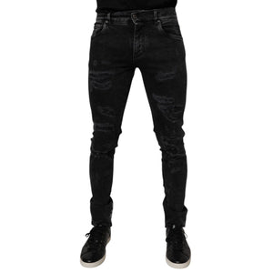 Dolce & Gabbana Black Tattered Cotton Skinny Men Denim Jeans