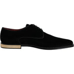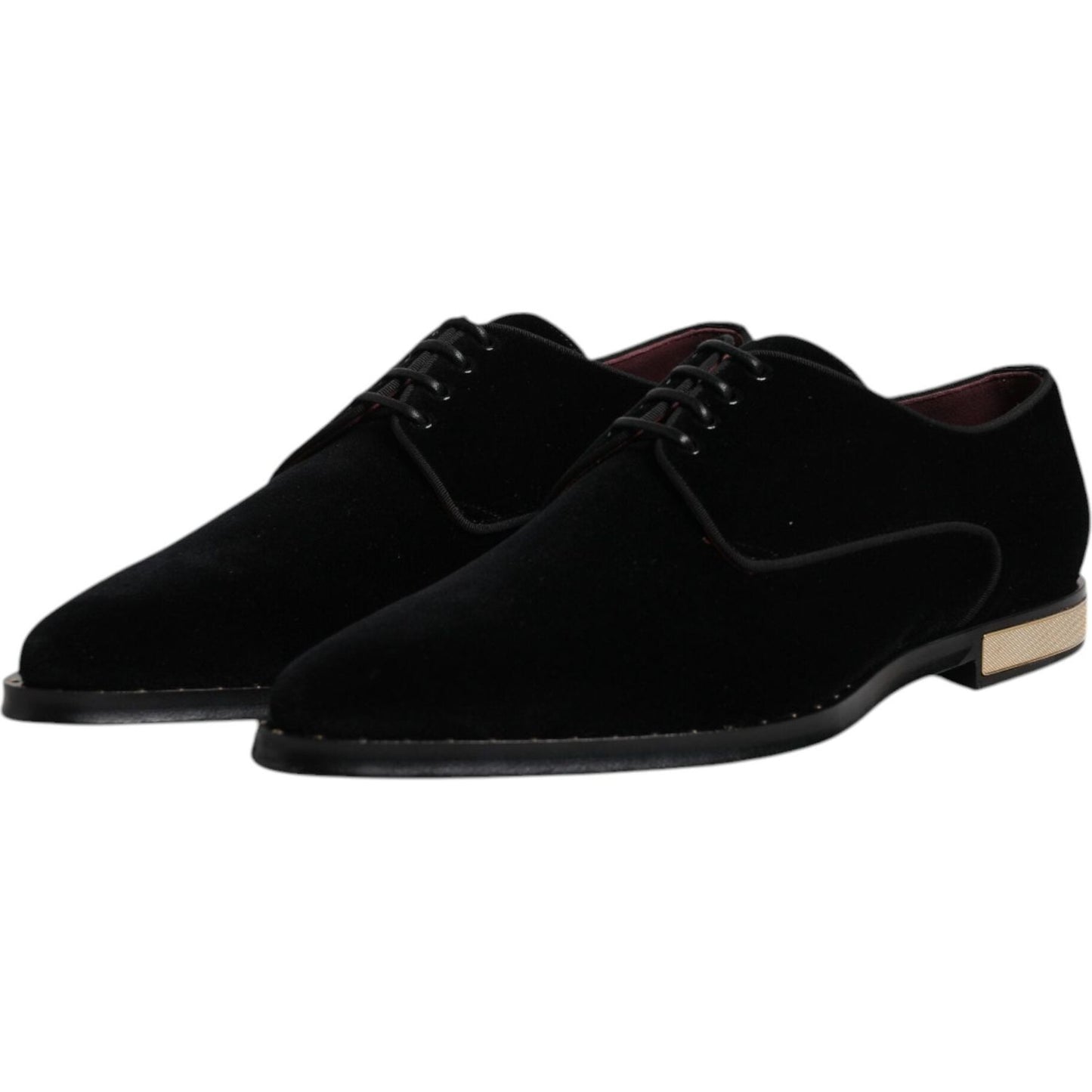 Dolce & Gabbana Black Velvet Cotton Lace Up Derby Shoes