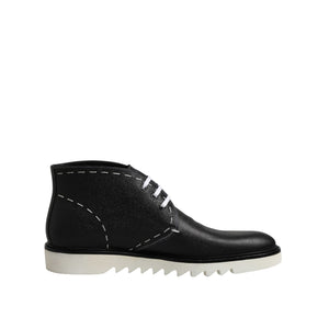 Dolce & Gabbana Black White Leather Ankle Boots Shoes