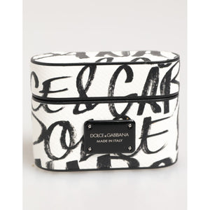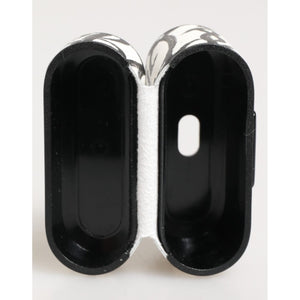 Dolce & Gabbana Black White Leather Monogram Print Logo Holder Airpods Case