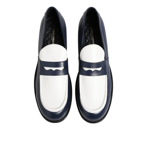 Dolce & Gabbana Black White Leather Slip On Loafers Men Dress Shoes