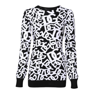 Dolce & Gabbana Black White Logo Print Women Pullover Sweater