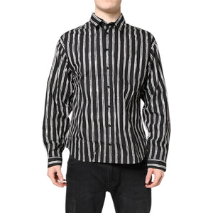 Dolce & Gabbana Black White Striped Cotton Dress Shirt
