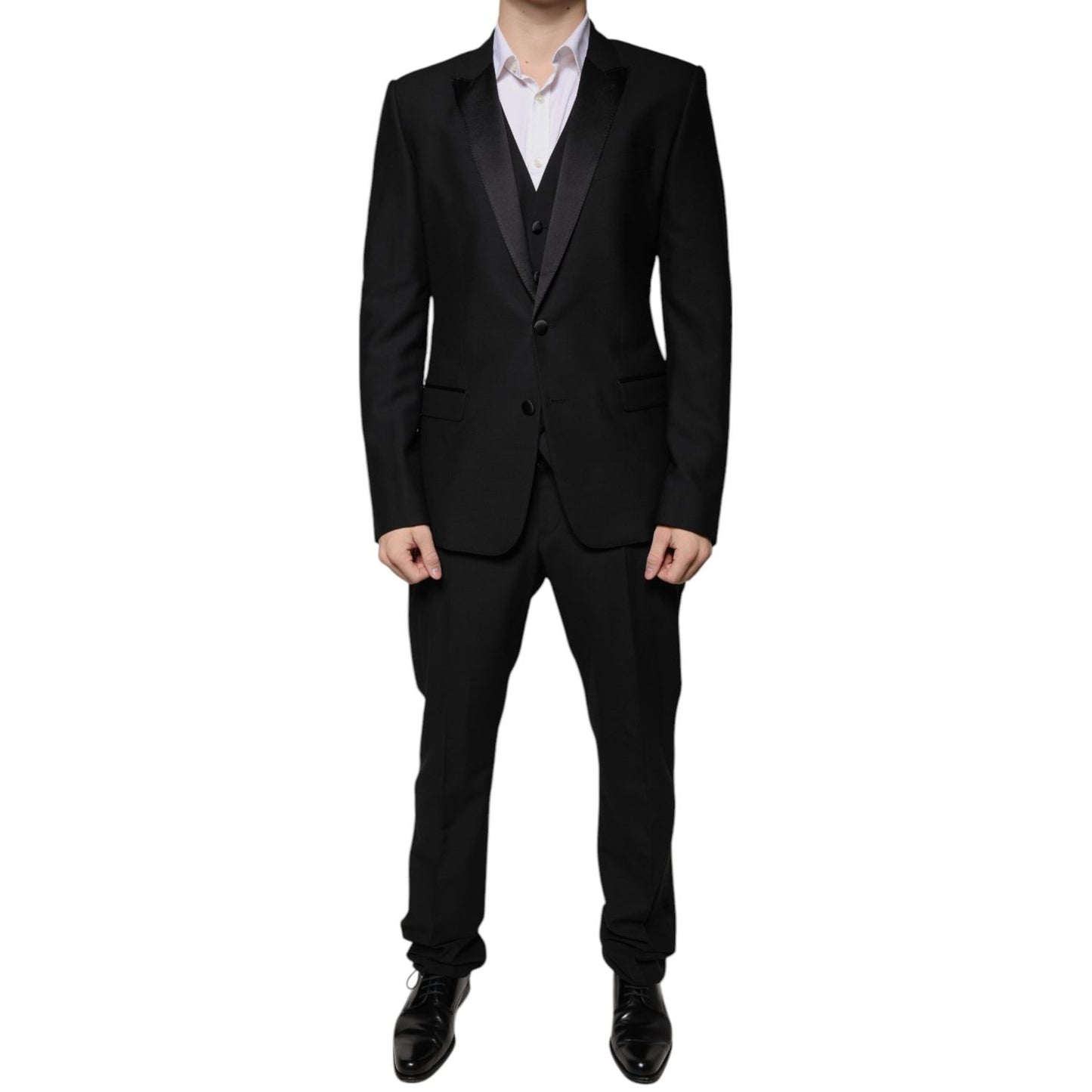 Dolce & Gabbana Black Wool 3 Piece Slim Fit Formal Suit