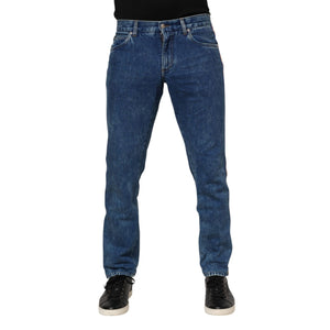 Dolce & Gabbana Blue Cotton Logo Plaque Denim Jeans