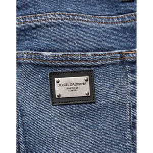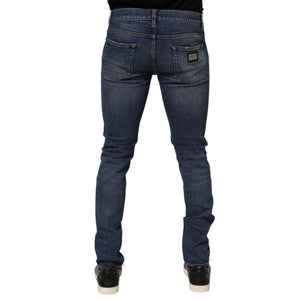 Dolce & Gabbana Blue Cotton Logo Plaque Skinny Men Denim Jeans