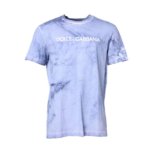 Dolce & Gabbana Blue Cotton Logo Print Crew Neck T-shirt