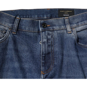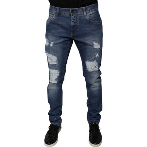 Dolce & Gabbana Blue Cotton Tattered Skinny Denim Jeans