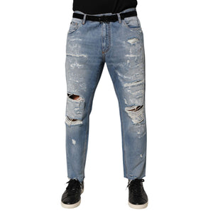 Dolce & Gabbana Blue Distressed Ripped Denim Trouser Jeans