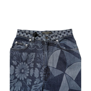 Dolce & Gabbana Blue Graphic Print Cotton Skinny Denim Jeans