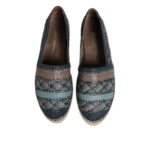 Dolce & Gabbana Blue Gray Woven Leather Buffalo Espadrille Shoes