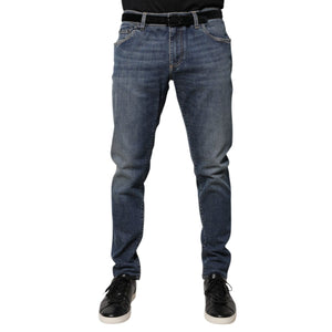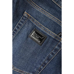 Dolce & Gabbana Blue Logo Plaque Cotton Skinny Denim Jeans