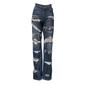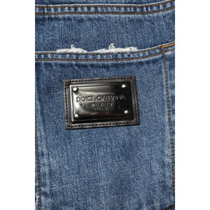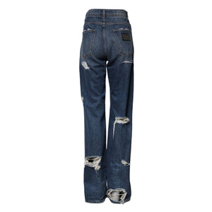 Dolce & Gabbana Blue Tattered Cotton Straight Denim Jeans