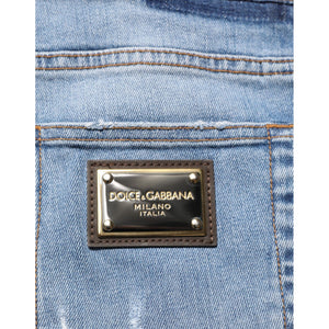 Dolce & Gabbana Blue Tattered Slim Fit Cotton Denim Jeans