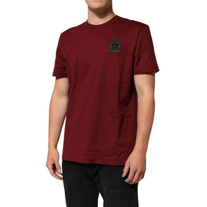 Dolce & Gabbana Bordeaux Red Cotton Crest Logo Patch T-Shirt