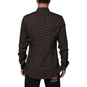 Dolce & Gabbana BrownFloral Collared GOLD Formal Dress Shirt
