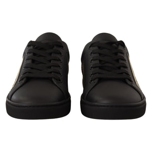 Dolce & Gabbana Black Gold Leather Low Top Sneakers Womens Shoes