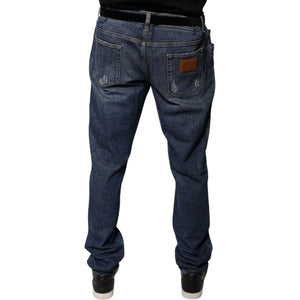 Dolce & Gabbana Dark Blue Cotton Logo Skinny Denim Jeans