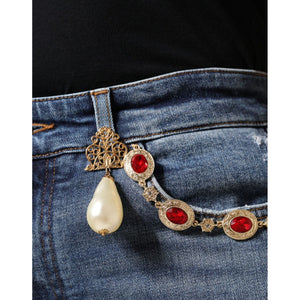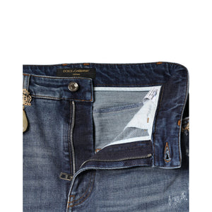 Dolce & Gabbana Dark Blue Cotton Tattered Skinny Denim Jeans
