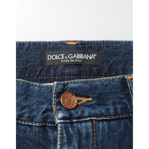 Dolce & Gabbana Dark Blue Washed Cotton Skinny Men Denim Jeans