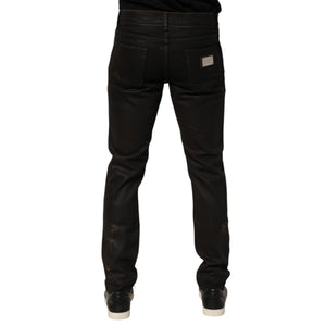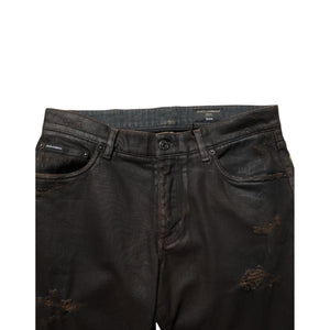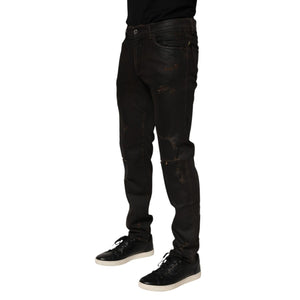 Dolce & Gabbana Dark Brown Tattered Cotton Skinny Denim Jeans