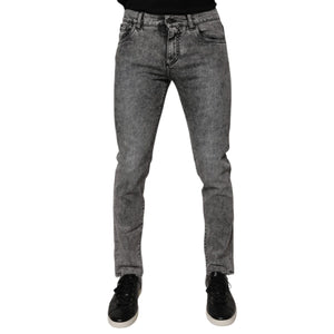 Dolce & Gabbana Dark Gray Washed Cotton Slim Fit Denim Jeans