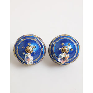 Dolce & Gabbana Gold Brass Blue Christmas Ball Crystal Drop Clip On Earrings