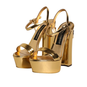 Dolce & Gabbana Gold Leather Platform Keira Sandals Shoes
