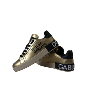 Dolce & Gabbana Gold Portofino Calf Leather Sneakers Women Shoes