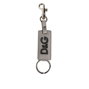 Dolce & Gabbana Gray Leather Logo Metal Ring Keychain Holder Keyring