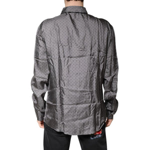 Dolce & Gabbana Gray Polka Dot Silk Long Sleeve Shirt