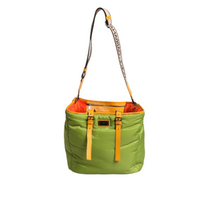 Dolce & Gabbana Green Nylon Padded Logo Plaque Tote Crossbody Bag