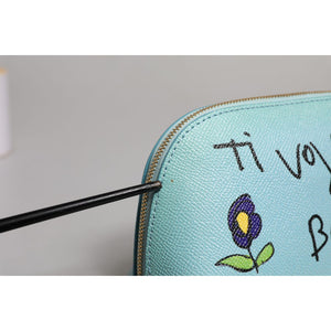 Dolce & Gabbana Light Blue Leather Handbag Clutch Mini Purse Pouch Bag