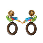 Dolce & Gabbana Multicolor Parrot Wood Brass Crystal Embellished Earrings