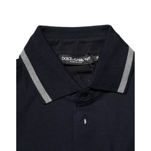 Gorgeous brand new, 100% Authentic Dolce & Gabbana men’s t-shirt.This stylish navy blue polo features a ribbed collar with grey tipping, short sleeves with striped trim, and a signature gold embroidered DG crest logo on the chest. A timeless piece that combines elegance with everyday comfort.