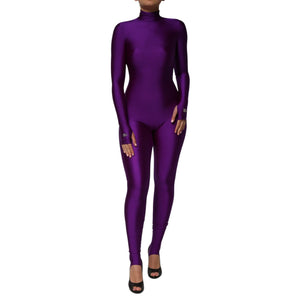 Dolce & Gabbana Purple Nylon Turtleneck Bodycon Jumpsuit Dress