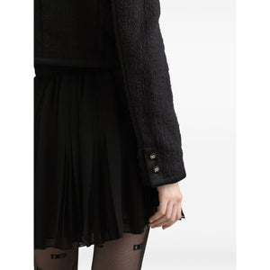 Dolce & Gabbana Rachel Tweed Jacket in black, featuring front button fastening, crew neck, and four patch pockets with buttoned cuffs.