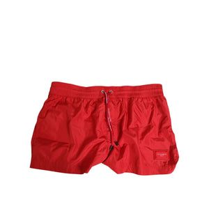 Dolce & Gabbana Red Drawstring Beachwear Men Shorts Swimwear