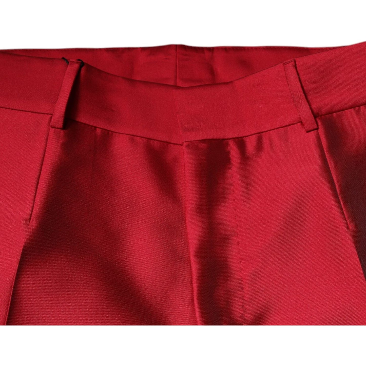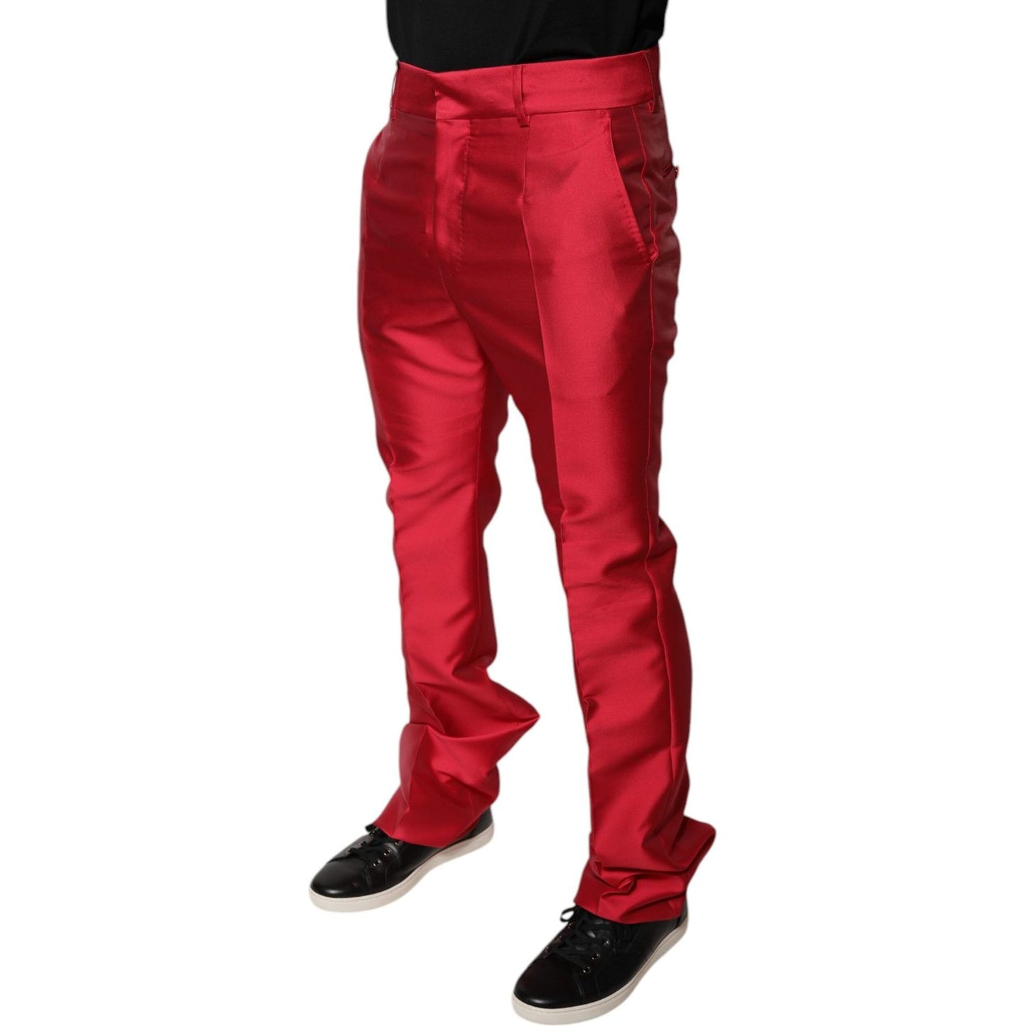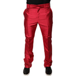 Dolce & Gabbana Red Silk Slim Fit Mid Waist Dress Formal Pants