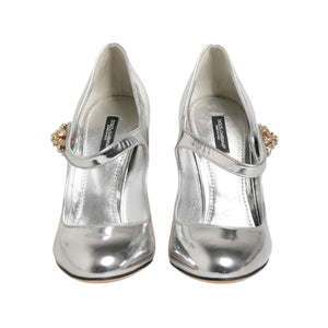 Dolce & Gabbana Silver Chandelier Sculpted Heel Mary Jane Pump Shoes