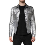 Dolce & Gabbana Silver Cotton Button Down Denim Biker Jacket