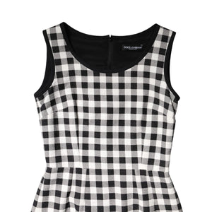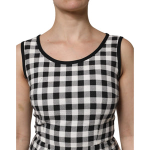 Dolce & Gabbana White Black Checkered Sleeveless Sheath Dress