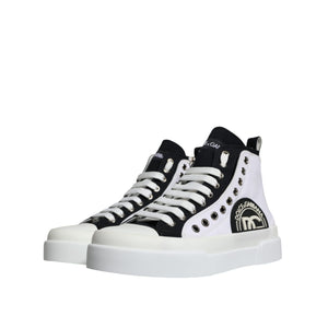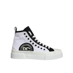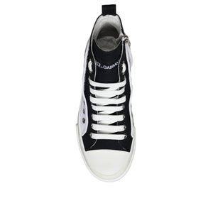 Dolce & Gabbana White Black Cotton Logo High Top Sneaker Shoes
