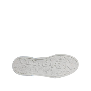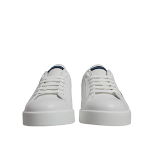 Dolce & Gabbana White Blue Leather Logo Low Top Sneakers Shoes
