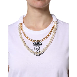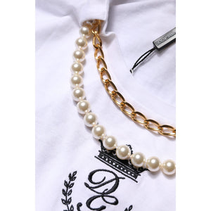Dolce & Gabbana White Chain Pearl Cotton Round Neck T-shirt